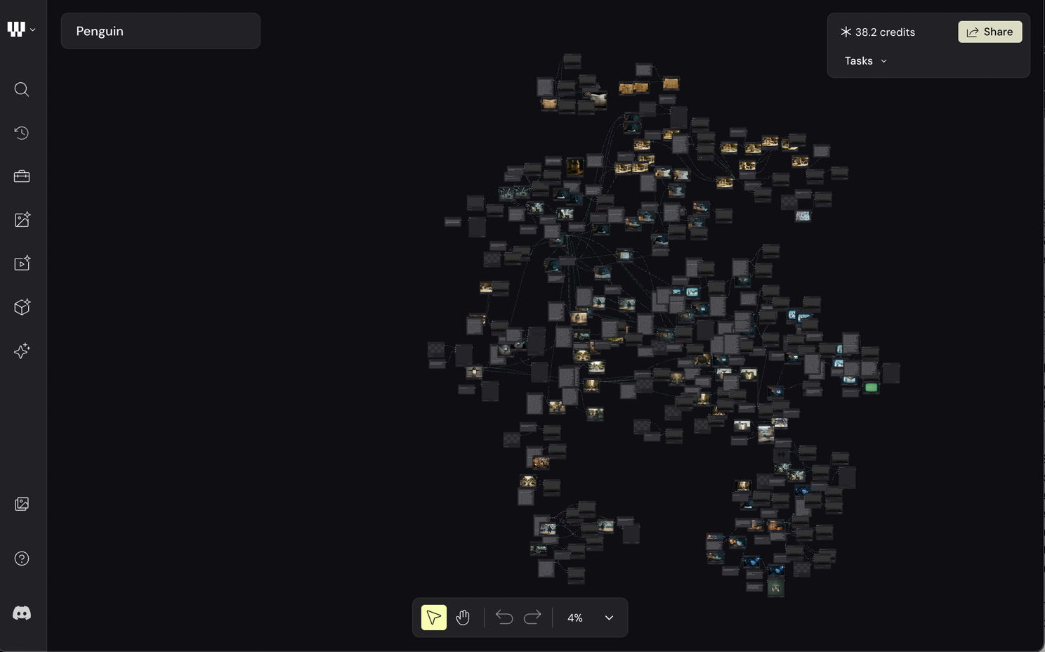 Page 1 of 8 of my Weavy workflow networks linking prompts, image generators, and video models into the AI pipeline used to create the video.