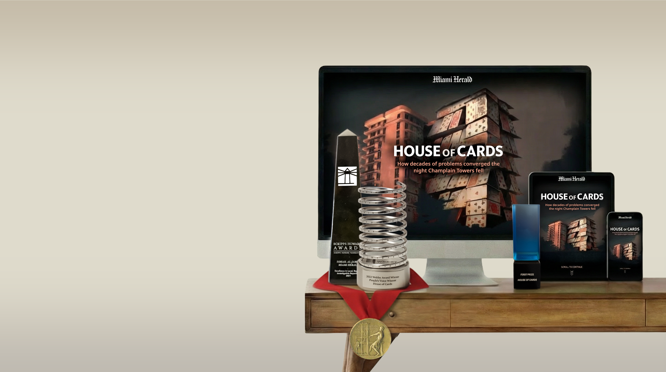 The work earned an International News Media Association Best in Show, a Scripps Howard Award, and a Webby People’s Voice Award. It was also part of the Miami Herald’s broader Surfside coverage, which received the Pulitzer Prize (staff award).